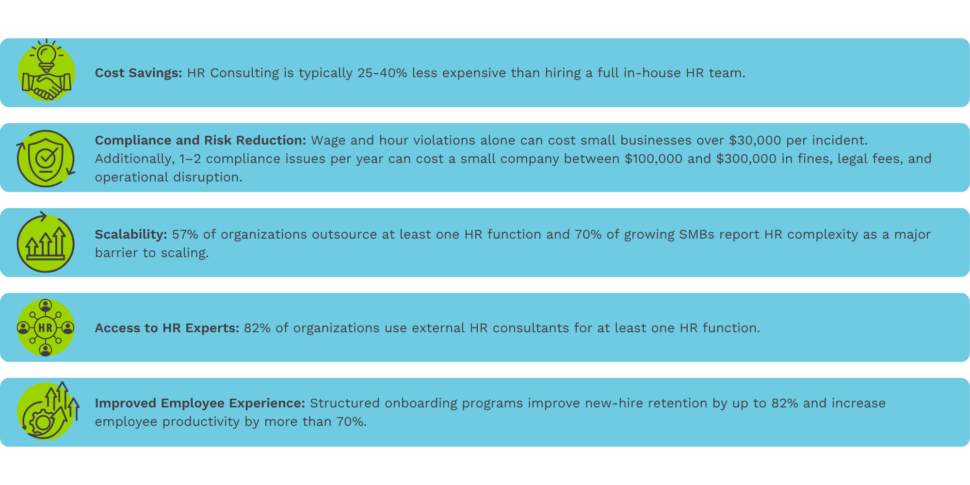 Managing payroll and benefits in-house is time-consuming and expensive. Errors in tax filings, benefits administration, or overtime pay can lead to penalties and employee dissatisfaction.